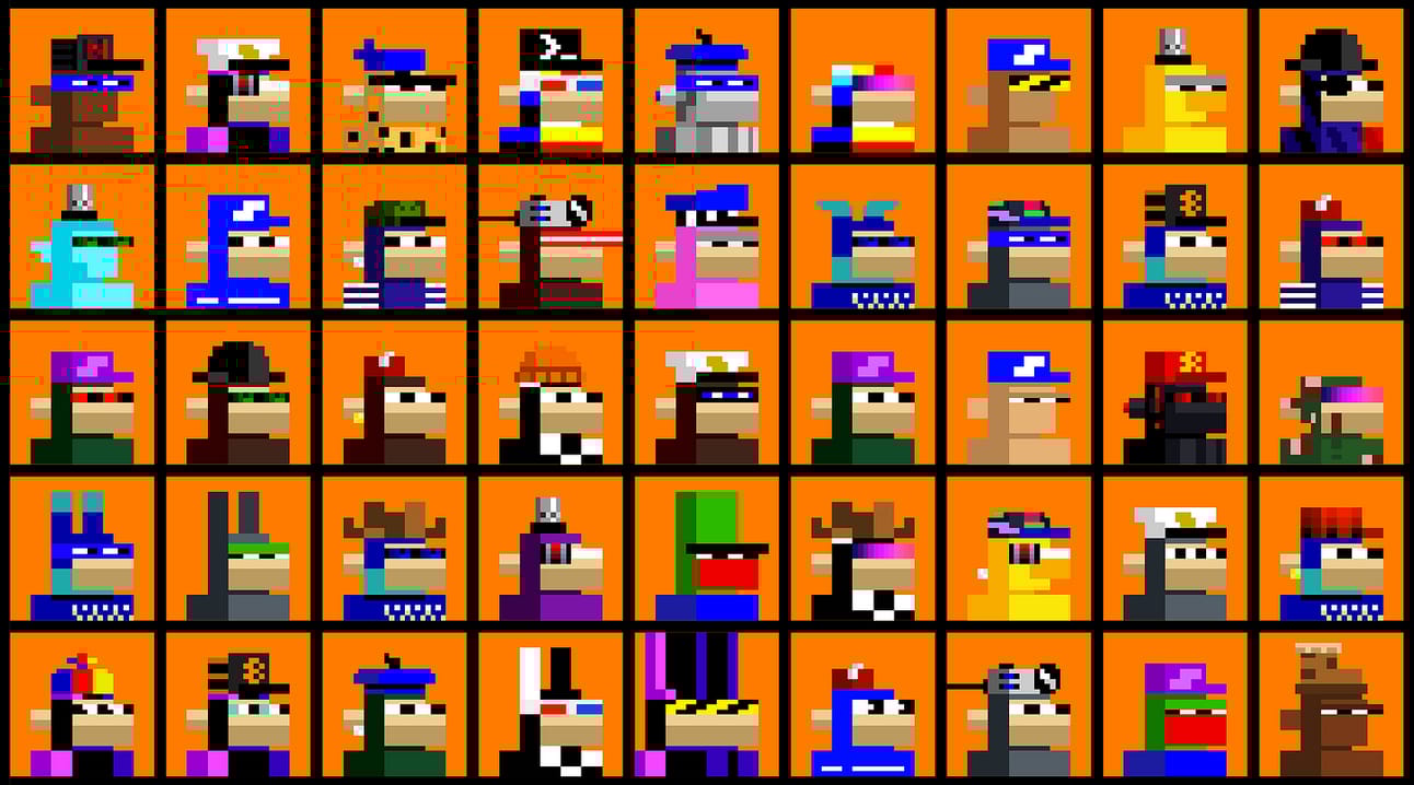 Cada personagem é um macaco abstrato, com alguns mais abstratos do que outros, deixando a interpretação de seus rostos em grande parte para a imaginação do espectador. No geral, a abordagem estilística aqui me lembra os Nouns, uma das coleções de NFT de arte pixel mais icônicas no Ethereum, mas mais explicitamente adaptada à cena do Bitcoin.