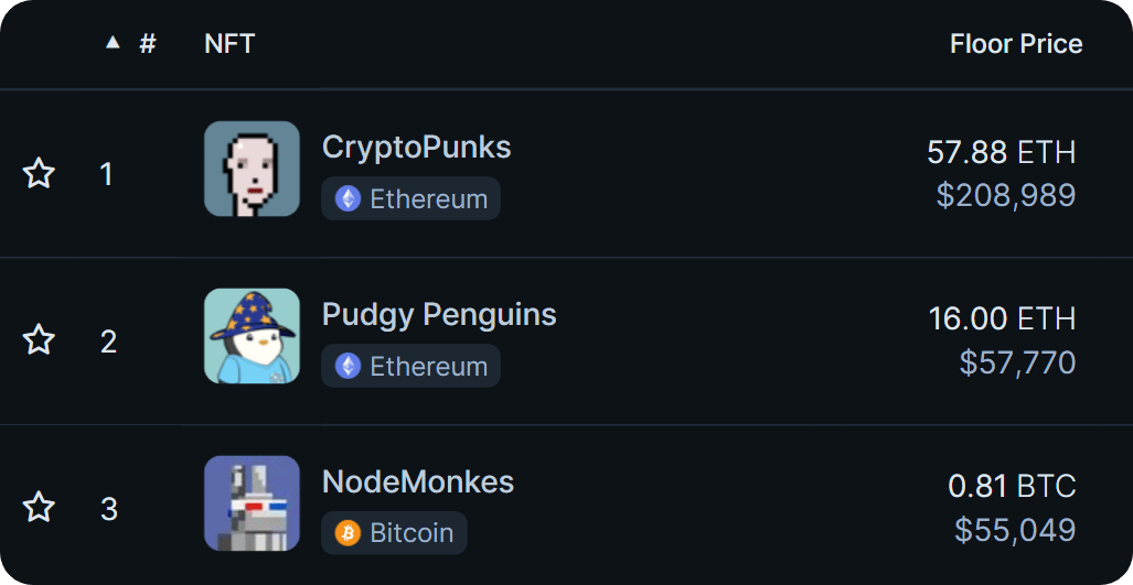 Agora, eles ascenderam não apenas como a maior coleção de NFT no Bitcoin, mas também entre as coleções mais valiosas em todo o espaço de NFT. Seu preço atual de base de 0,81 BTC, um aumento de 2.600% em relação ao custo de mintagem de 0,03 BTC, coloca os Nodes atrás apenas de CryptoPunks e Pudgy Penguins em termos de valor de base no momento. Quanto ao valor de mercado, os Nodes ($500M) ficam em segundo lugar, atrás apenas dos ‘Punks ($2B) no momento.