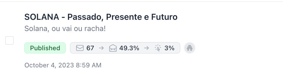Você que é assinante da NEWS, sabe que mandamos um relatório sobre SOLANA dizendo que não havia sentido algum ela estar sendo negociada a USD 30,0 - isso mesmo TRINTA DOLARES, quem segurou até hoje já fez 5x somente em UMA MOEDA.