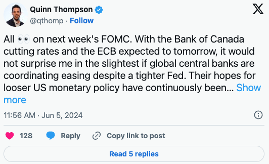 Embora a Ferramenta FedWatch da CME indique que há pouca chance de mudança nas taxas de juros dos EUA até setembro, é claro que os formuladores de políticas globais estão coordenando para taxas de juros mais baixas, iluminando o caminho para um ciclo agressivo de cortes.