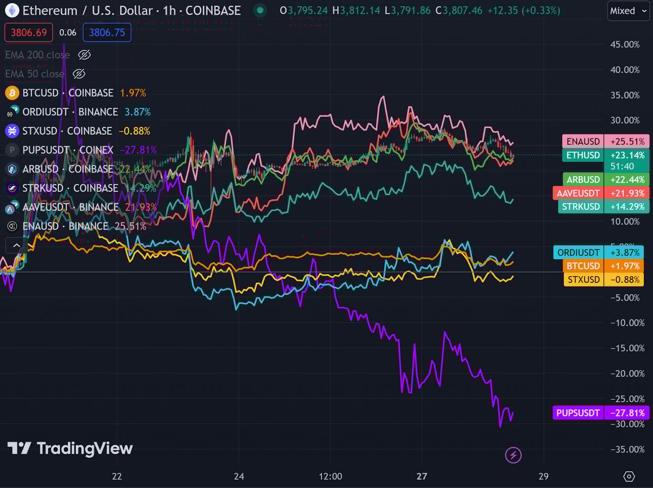 Reconhecendo que o BTC não está exclusivamente posicionado para ser o único ativo com clareza regulatória e acesso ao TradFi, os participantes do mercado aparentemente estão rotacionando para fora dos tokens vinculados ao BTC, evidenciado pela imensa fraqueza experimentada por muitos desses tokens em comparação com seus equivalentes nativos do Ethereum.