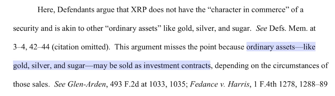 O status de segurança do token XRP, no entanto, é irrelevante para saber se as transações XRP constituem contratos de investimento. Afinal, até mesmo certas transações de commodities podem ser consideradas contratos de investimento, dependendo das circunstâncias da venda.